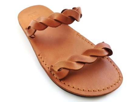 סנדל עור לנשים בעיצוב ייחודי. שתי רצועות בשזירת צמה עדינה היוצרות מראה רך ונשי.
